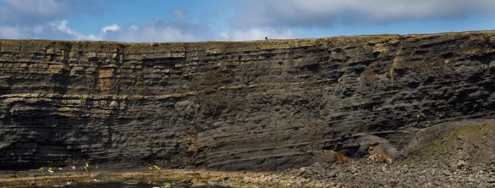 The view from its summit is magnificent embracing the rim of the Atlantic for 150 degrees: the Aran Islands, the Cliffs of Moher and the Connemara mountains.